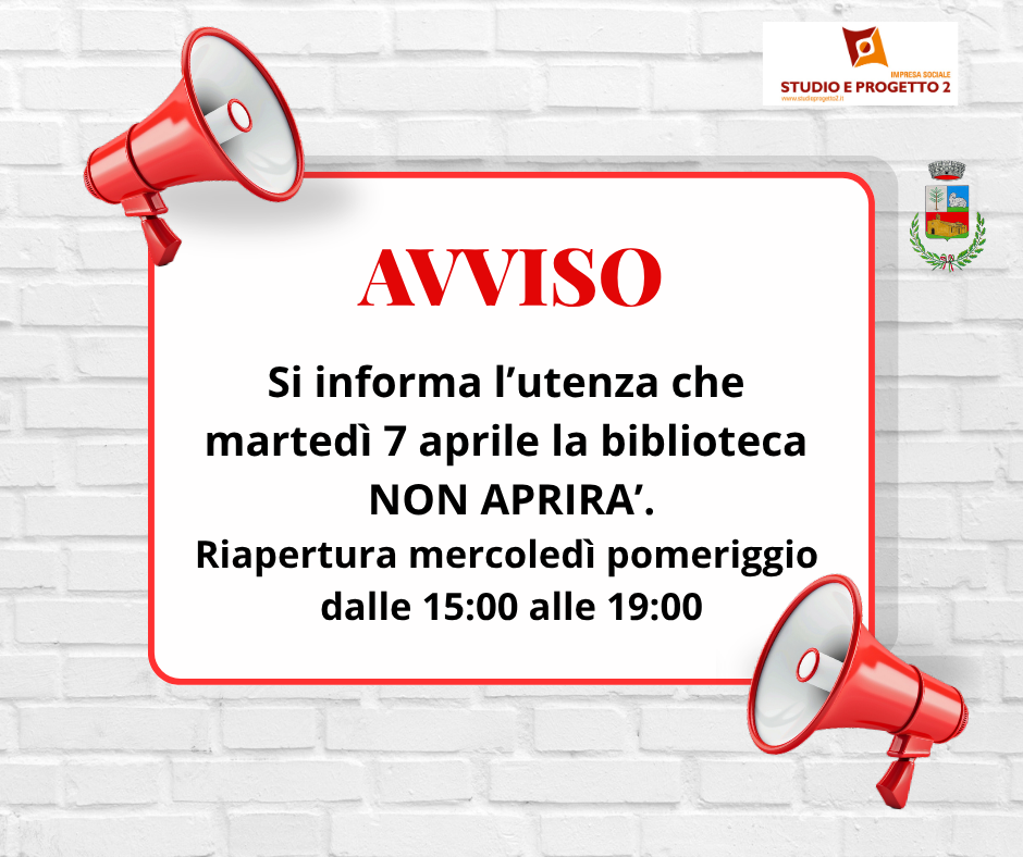 martedì 7 aprile la biblioteca sarà CHIUSA